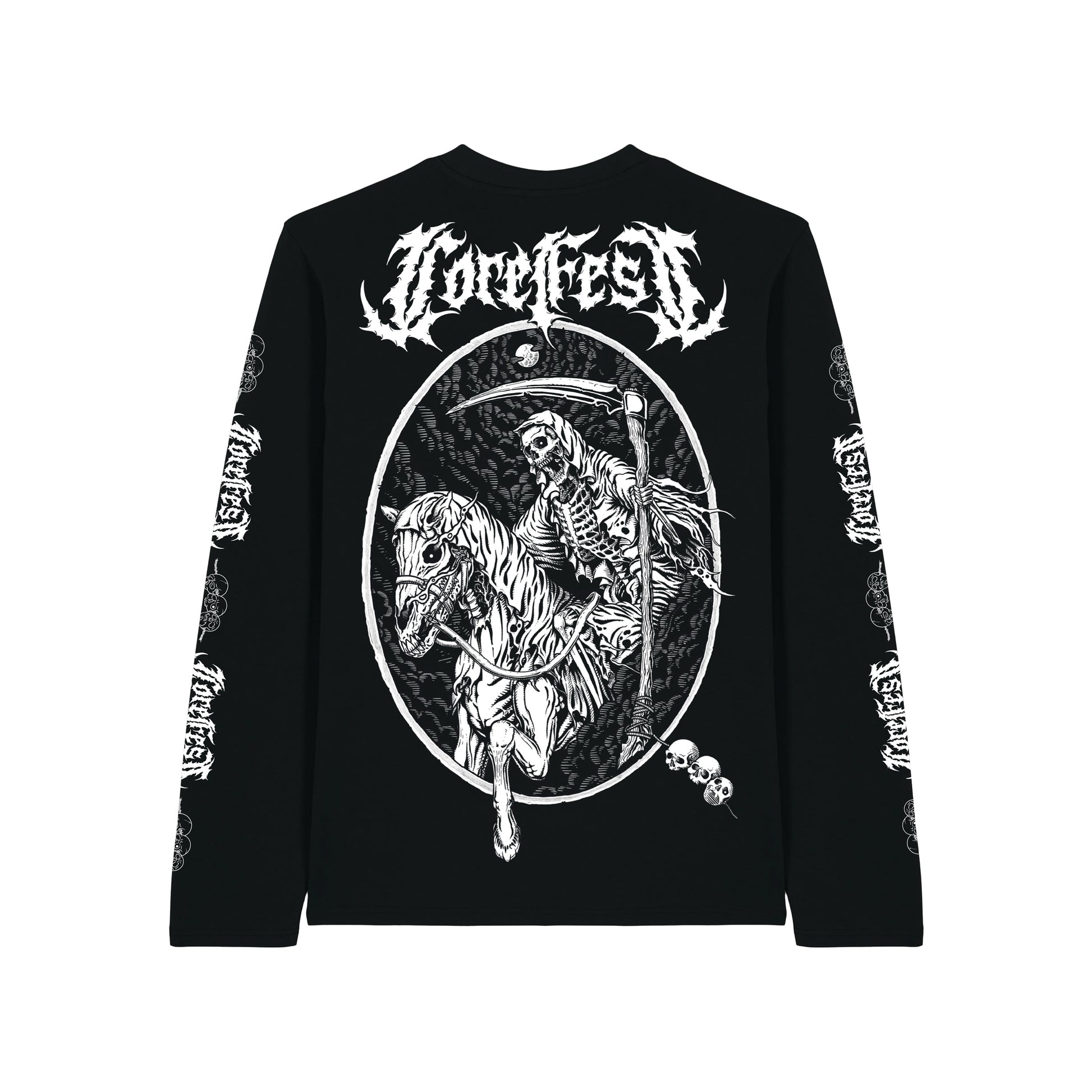Der Deathrider Longsleeve. Unisex Medium Fit Longsleeve mit weißem Siebdruck.